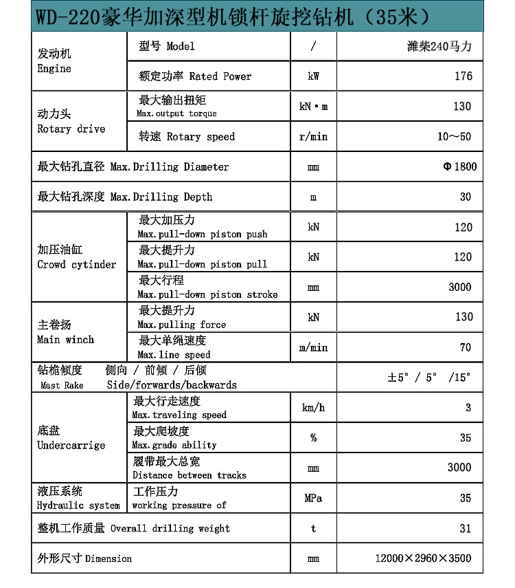 WD-220豪华加深型旋挖钻机